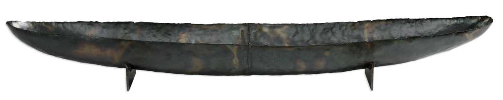 Heavily hand forged iron with an oxidized finish, raw looking edges and visible weld marks throughout. The beauty of this piece is its over-sized scale and how raw and hand made it looks.